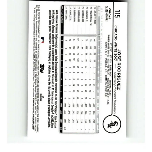 2024 Topps Chrome X-Fractor #115 Jose Rodriguez NM-MT RC Rookie Chicago White Sox Baseball Card