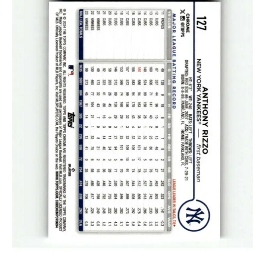2024 Topps Chrome X-Fractor #127 Anthony Rizzo NM-MT New York Yankees Baseball Card