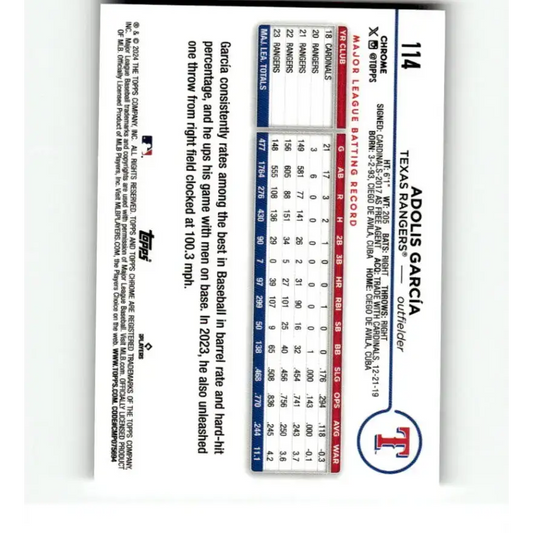 2024 Topps Chrome X-Fractor #114 Adolis Garcia NM-MT Texas Rangers Baseball Card