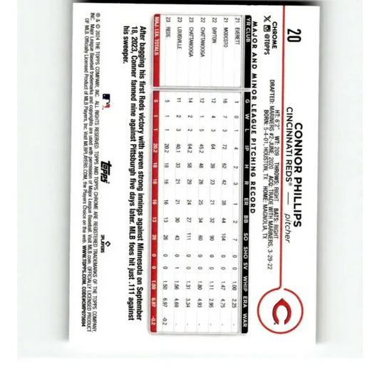 2024 Topps Chrome X-Fractor #20 Connor Phillips NM-MT RC Rookie Cincinnati Reds Baseball Card