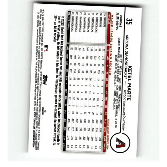 2024 Topps Chrome Refractor Prism #35 Ketel Marte NM-MT Arizona Diamondbacks Baseball Card