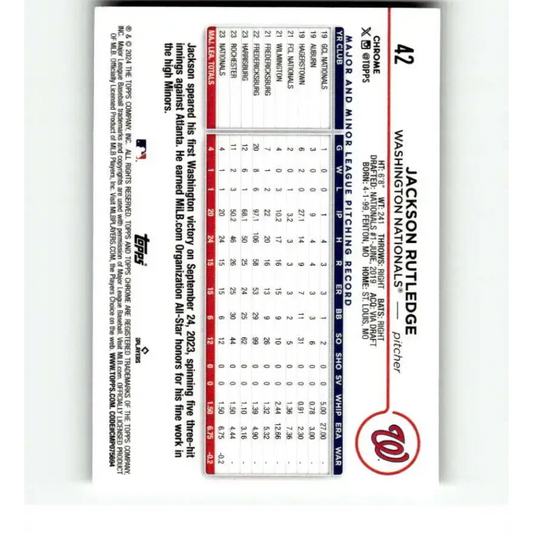 2024 Topps Chrome Refractor Prism #42 Jackson Rutledge NM-MT RC Rookie Washington Nationals Baseball Card