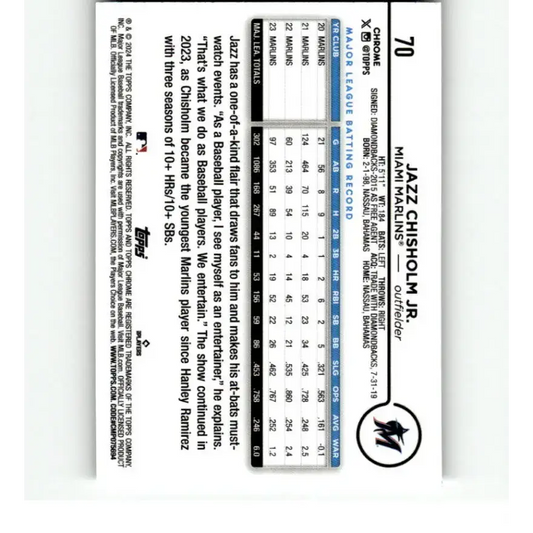 2024 Topps Chrome Refractor Prism #70 Jazz Chisholm Jr. NM-MT Miami Marlins Baseball Card