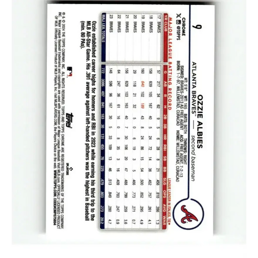 2024 Topps Chrome Refractor Prism #9 Ozzie Albies NM-MT Atlanta Braves Baseball Card