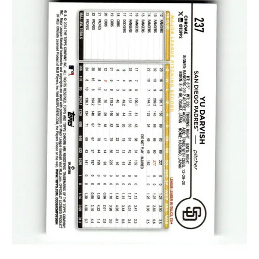 2024 Topps Chrome Refractor RayWave #237 Yu Darvish NM-MT San Diego Padres Baseball Card