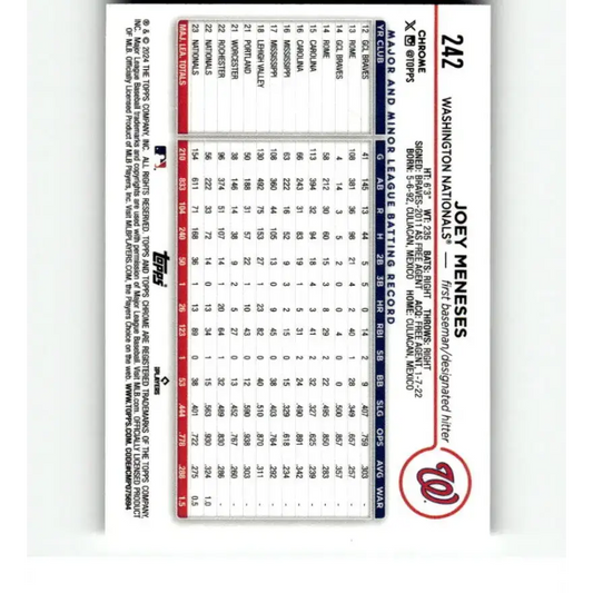 2024 Topps Chrome Refractor RayWave #242 Joey Meneses NM-MT Washington Nationals Baseball Card