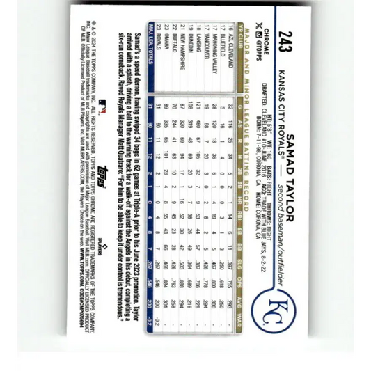 2024 Topps Chrome Refractor RayWave #243 Samad Taylor NM-MT RC Rookie Kansas City Royals Baseball Card