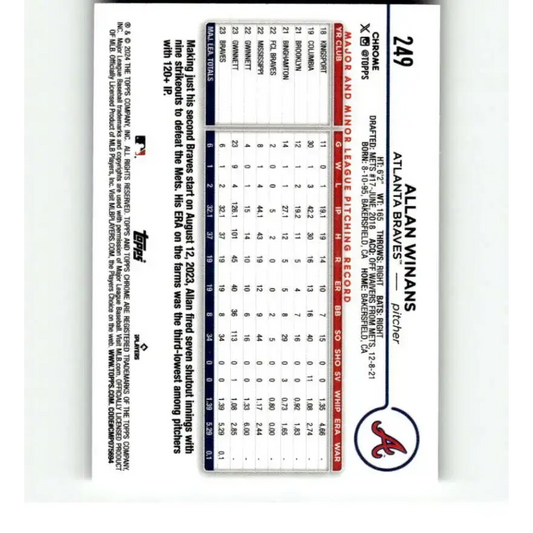 2024 Topps Chrome Refractor RayWave #249 Allan Winans NM-MT RC Rookie Atlanta Braves Baseball Card