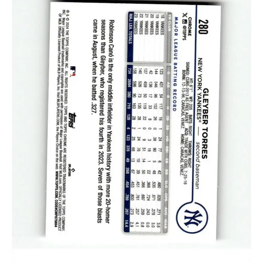 2024 Topps Chrome Refractor RayWave #280 Gleyber Torres NM-MT New York Yankees Baseball Card