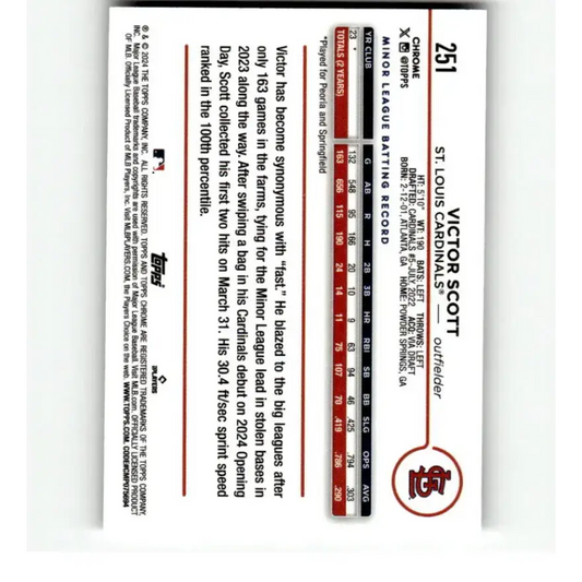 2024 Topps Chrome Refractor RayWave #251 Victor Scott NM-MT RC Rookie St Louis Cardinals Baseball Card