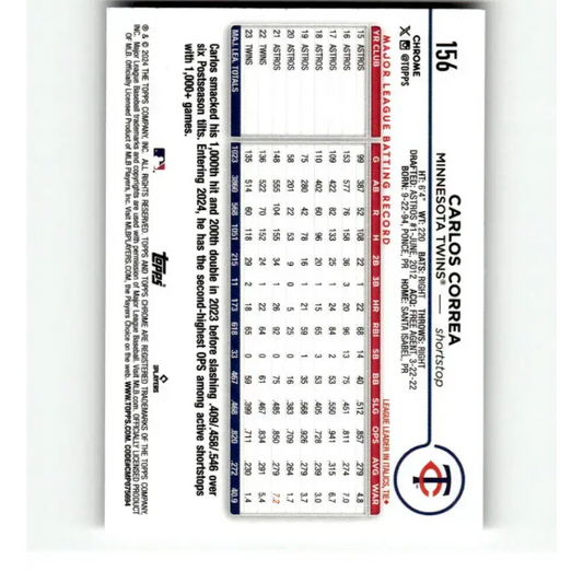 2024 Topps Chrome Refractor RayWave #156 Carlos Correa NM-MT Minnesota Twins Baseball Card