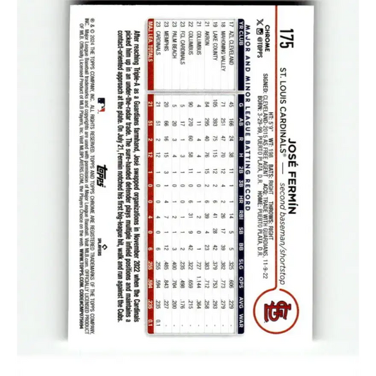 2024 Topps Chrome Refractor RayWave #175 Jose Fermin NM-MT RC Rookie St Louis Cardinals Baseball Card