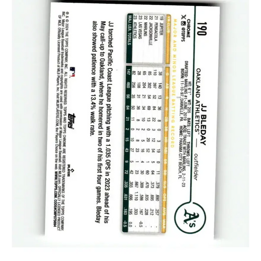 2024 Topps Chrome Refractor RayWave #190 JJ Bleday NM-MT Oakland Athletics Baseball Card