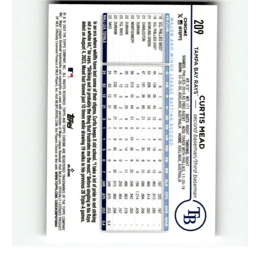 2024 Topps Chrome Refractor RayWave #209 Curtis Mead NM-MT RC Rookie Tampa Bay Rays Baseball Card