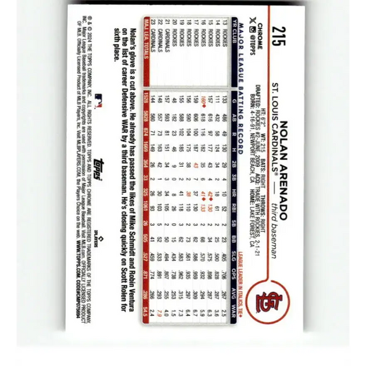 2024 Topps Chrome Refractor RayWave #215 Nolan Arenado NM-MT St Louis Cardinals Baseball Card