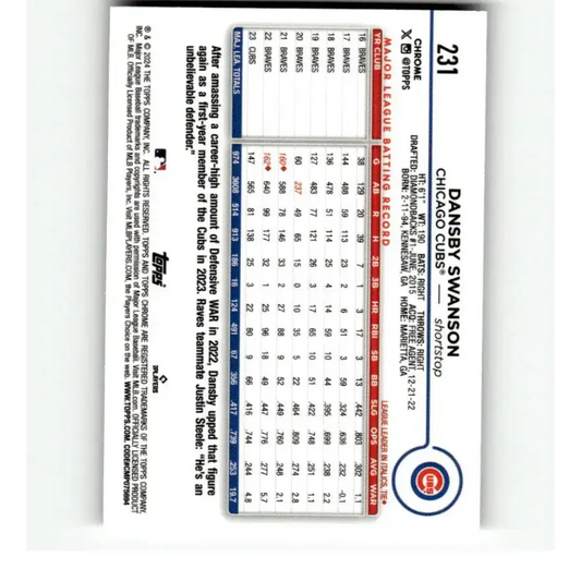 2024 Topps Chrome Refractor RayWave #231 Dansby Swanson NM-MT Chicago Cubs Baseball Card