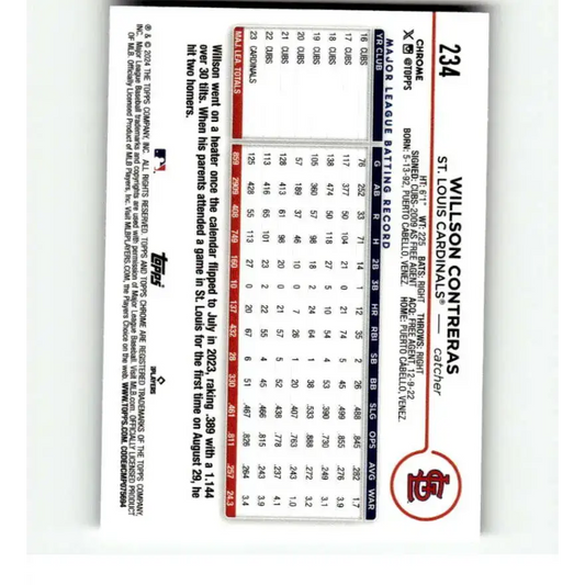 2024 Topps Chrome Refractor RayWave #234 Willson Contreras NM-MT St Louis Cardinals Baseball Card