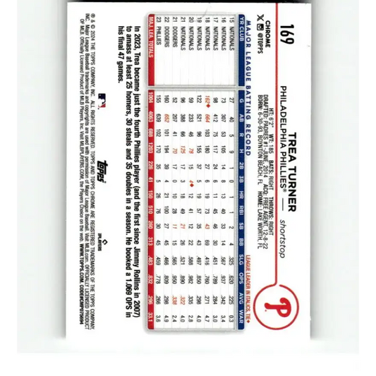 2024 Topps Chrome Refractor RayWave #169 Trea Turner NM-MT Philadelphia Phillies Baseball Card