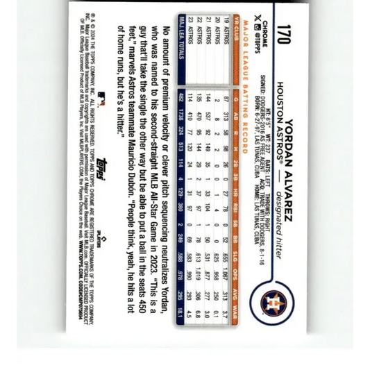 2024 Topps Chrome Refractor RayWave #170 Yordan Alvarez NM-MT Houston Astros Baseball Card