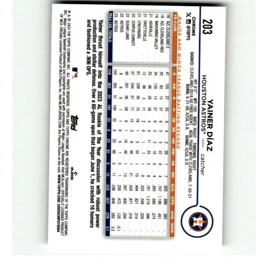 2024 Topps Chrome Refractor RayWave #203 Yainer Diaz NM-MT Houston Astros Baseball Card
