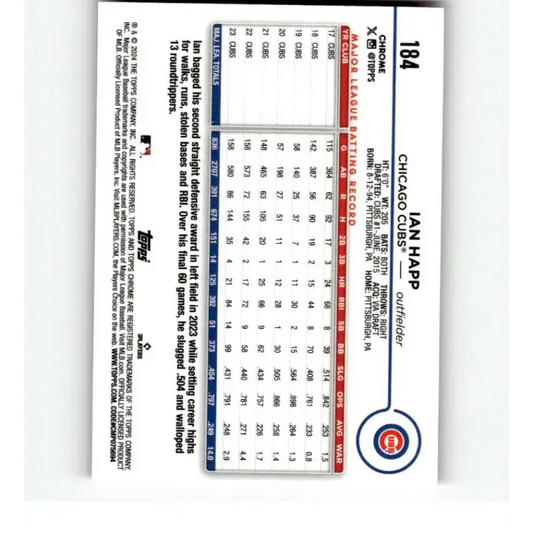 2024 Topps Chrome Refractor Pink #184 Ian Happ NM-MT Chicago Cubs Baseball Card