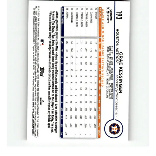 2024 Topps Chrome Refractor Pink #193 Grae Kessinger NM-MT RC Rookie Houston Astros Baseball Card