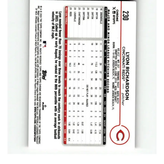 2024 Topps Chrome Refractor Pink #230 Lyon Richardson NM-MT RC Rookie Cincinnati Reds Baseball Card