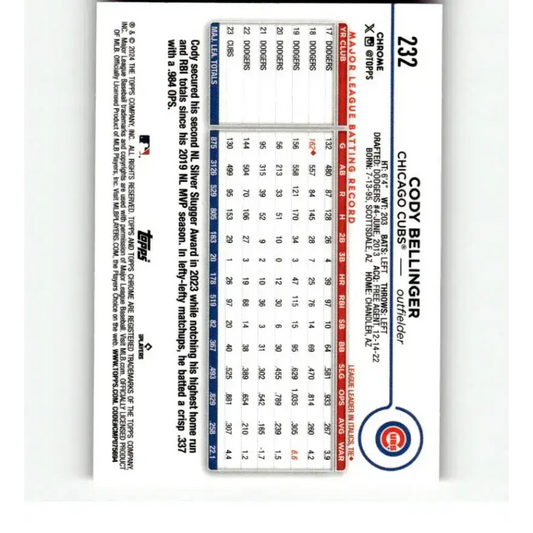 2024 Topps Chrome Refractor Pink #232 Cody Bellinger NM-MT Chicago Cubs Baseball Card