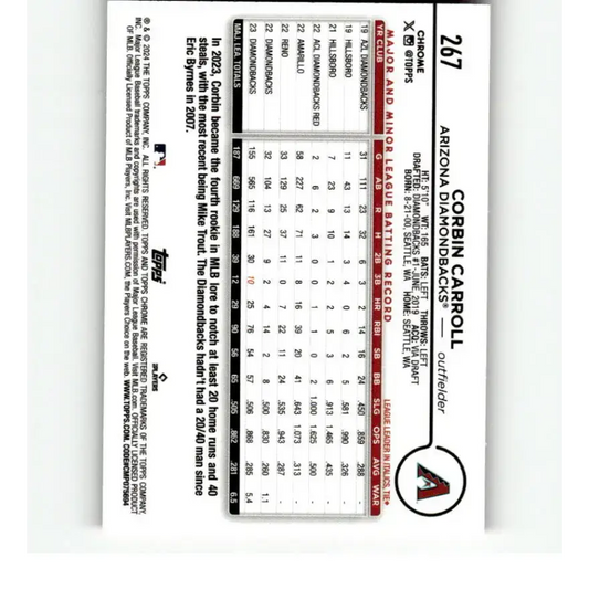 2024 Topps Chrome Refractor Pink #267 Corbin Carroll NM-MT Arizona Diamondbacks Baseball Card