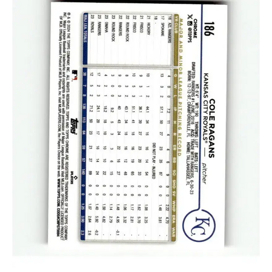 2024 Topps Chrome Refractor Pink #186 Cole Ragans NM-MT Kansas City Royals Baseball Card
