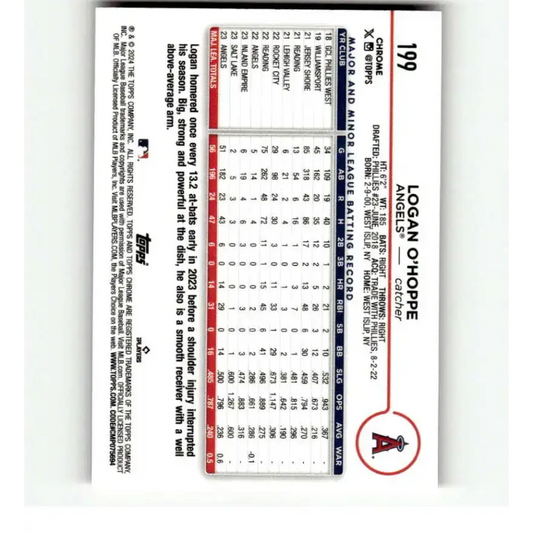 2024 Topps Chrome Refractor Pink #199 Logan O'Hoppe NM-MT Los Angeles Angels Baseball Card