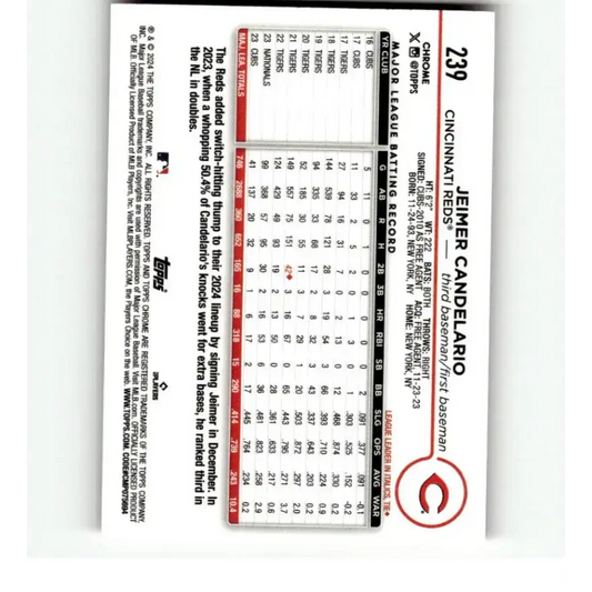 2024 Topps Chrome Refractor Pink #239 Jeimer Candelario NM-MT Cincinnati Reds Baseball Card