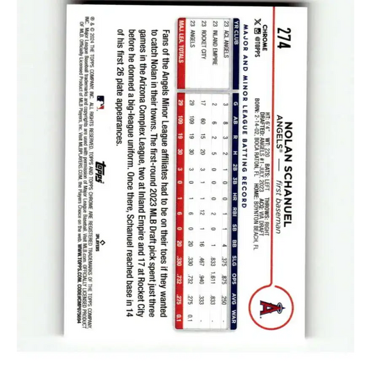 2024 Topps Chrome Refractor Pink #274 Nolan Schanuel NM-MT RC Rookie Los Angeles Angels Baseball Card