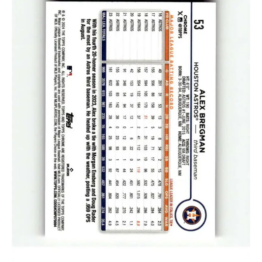 2024 Topps Chrome Refractor Pink #53 Alex Bregman NM-MT Houston Astros Baseball Card