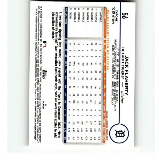 2024 Topps Chrome Refractor Pink #56 Jack Flaherty NM-MT Detroit Tigers Baseball Card