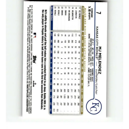 2024 Topps Chrome Refractor Pink #7 MJ Melendez NM-MT Kansas City Royals Baseball Card