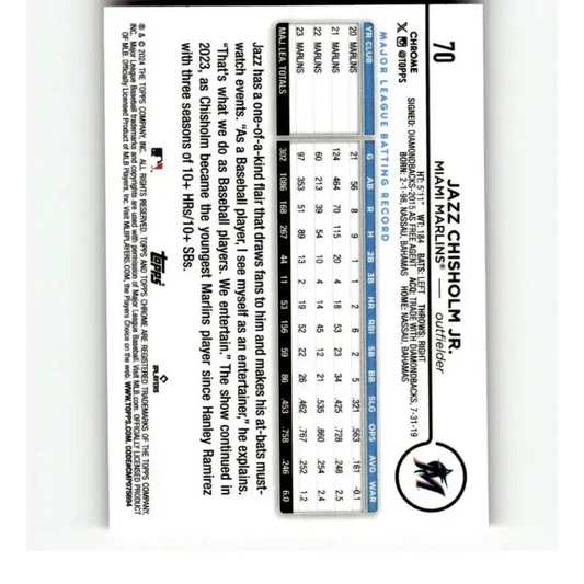 2024 Topps Chrome Refractor Pink #70 Jazz Chisholm Jr. NM-MT Miami Marlins Baseball Card