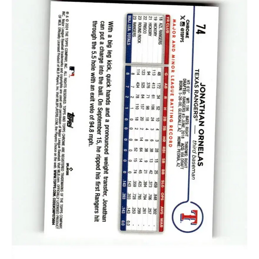 2024 Topps Chrome Refractor Pink #74 Jonathan Ornelas NM-MT RC Rookie Texas Rangers Baseball Card