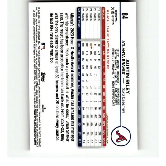 2024 Topps Chrome Refractor Pink #84 Austin Riley NM-MT Atlanta Braves Baseball Card