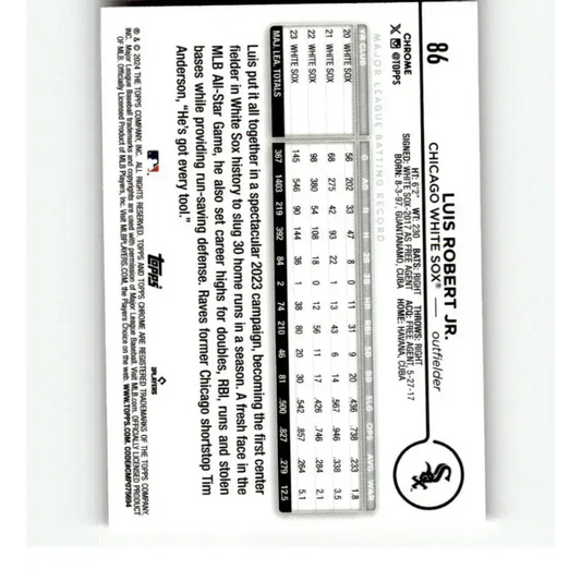 2024 Topps Chrome Refractor Pink #86 Luis Robert Jr. NM-MT Chicago White Sox Baseball Card