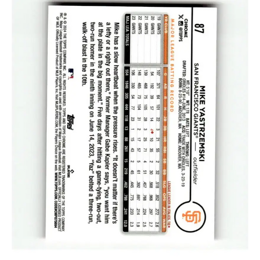 2024 Topps Chrome Refractor Pink #87 Mike Yastrzemski NM-MT San Francisco Giants Baseball Card