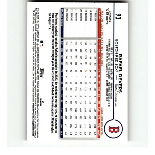 2024 Topps Chrome Refractor Pink #93 Rafael Devers NM-MT Boston Red Sox Baseball Card