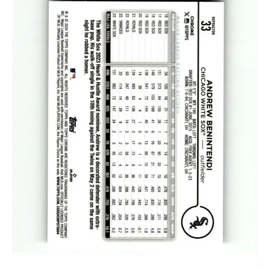 2024 Topps Chrome Refractor #33 Andrew Benintendi NM-MT Chicago White Sox Baseball Card