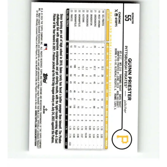2024 Topps Chrome Refractor #55 Quinn Priester NM-MT RC Rookie Pittsburgh Pirates Baseball Card