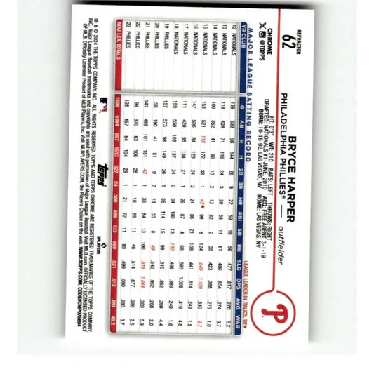 2024 Topps Chrome Refractor #62 Bryce Harper NM-MT Philadelphia Phillies Baseball Card