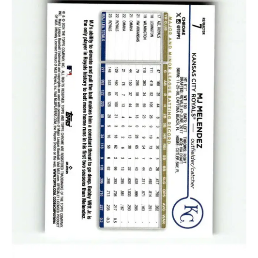 2024 Topps Chrome Refractor #7 MJ Melendez NM-MT Kansas City Royals Baseball Card