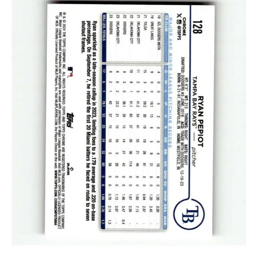 2024 Topps Chrome Refractor Pink #128 Ryan Pepiot NM-MT Tampa Bay Rays Baseball Card