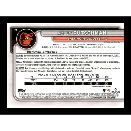 2024 Bowman #77 Adley Rutschman NM-MT Baltimore Orioles Baseball Card