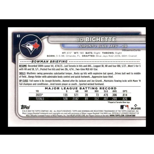 2024 Bowman #83 Bo Bichette NM-MT Toronto Blue Jays Baseball Card