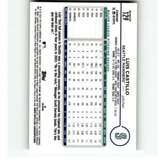2024 Topps Chrome Refractor #129 Luis Castillo NM-MT Seattle Mariners Baseball Card